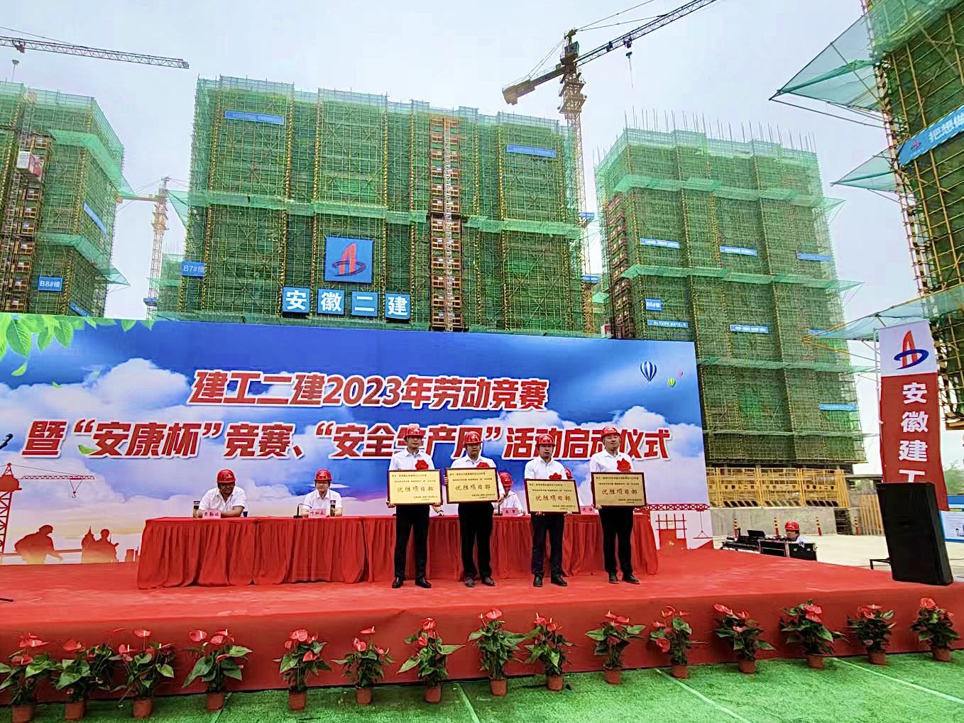5月30日上午,建工二建在蕪湖中丞濱江時代項目現(xiàn)場舉行2023年勞動競賽暨“安康杯”競賽、“安全生產(chǎn)月”活動啟動儀式。公司領(lǐng)導班子成員,勞動競賽委員會成員,所屬各單位主要領(lǐng)導,分管安全、生產(chǎn)及質(zhì)量副經(jīng)理,工會(副)主席,工管科、安全科科長,公司工會、工程管理部、安全管理部、技術(shù)質(zhì)量部相關(guān)人員,受表彰先進集體和個人代表等共百余人參加本次活動,公司黨委副書記、工會主席王軍主持啟動儀式。