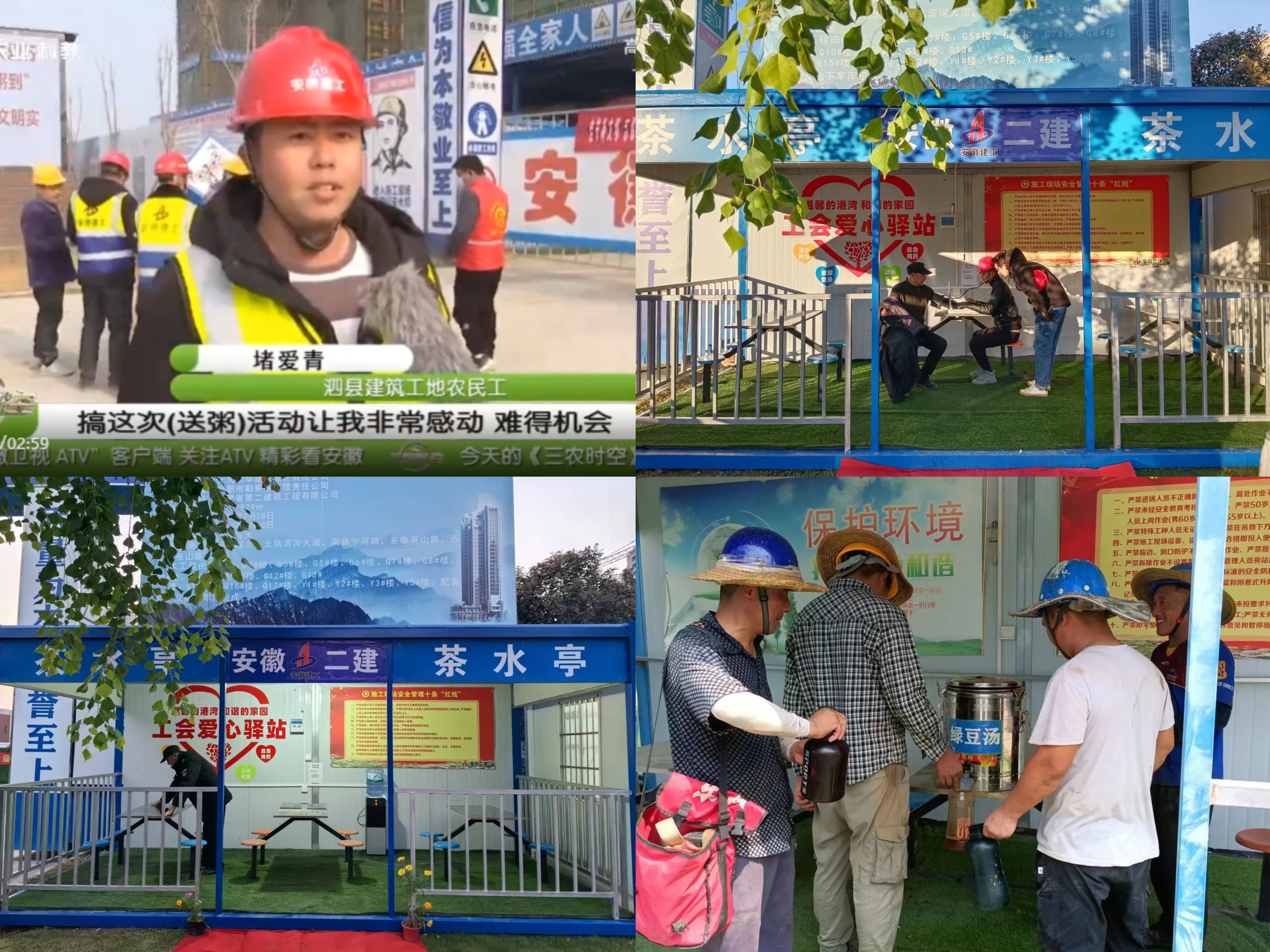 泗縣多金城項(xiàng)目“工會(huì)驛站”建設(shè)面積約40平方米,自開工以來(lái),為方便一線工友就餐、休息,設(shè)立了茶水亭、休息室等“工會(huì)驛站”,并配備了純凈水、防暑降溫和外傷應(yīng)急藥品、血壓測(cè)量?jī)x、充電設(shè)施、免費(fèi)WiFi、閱讀室等。通過定期組織免費(fèi)體檢、防暑降溫藥品和飲品發(fā)放、“臘八節(jié)”送粥等公益服務(wù)活動(dòng),為一線員工提供了一個(gè)溫馨的休憩港灣。