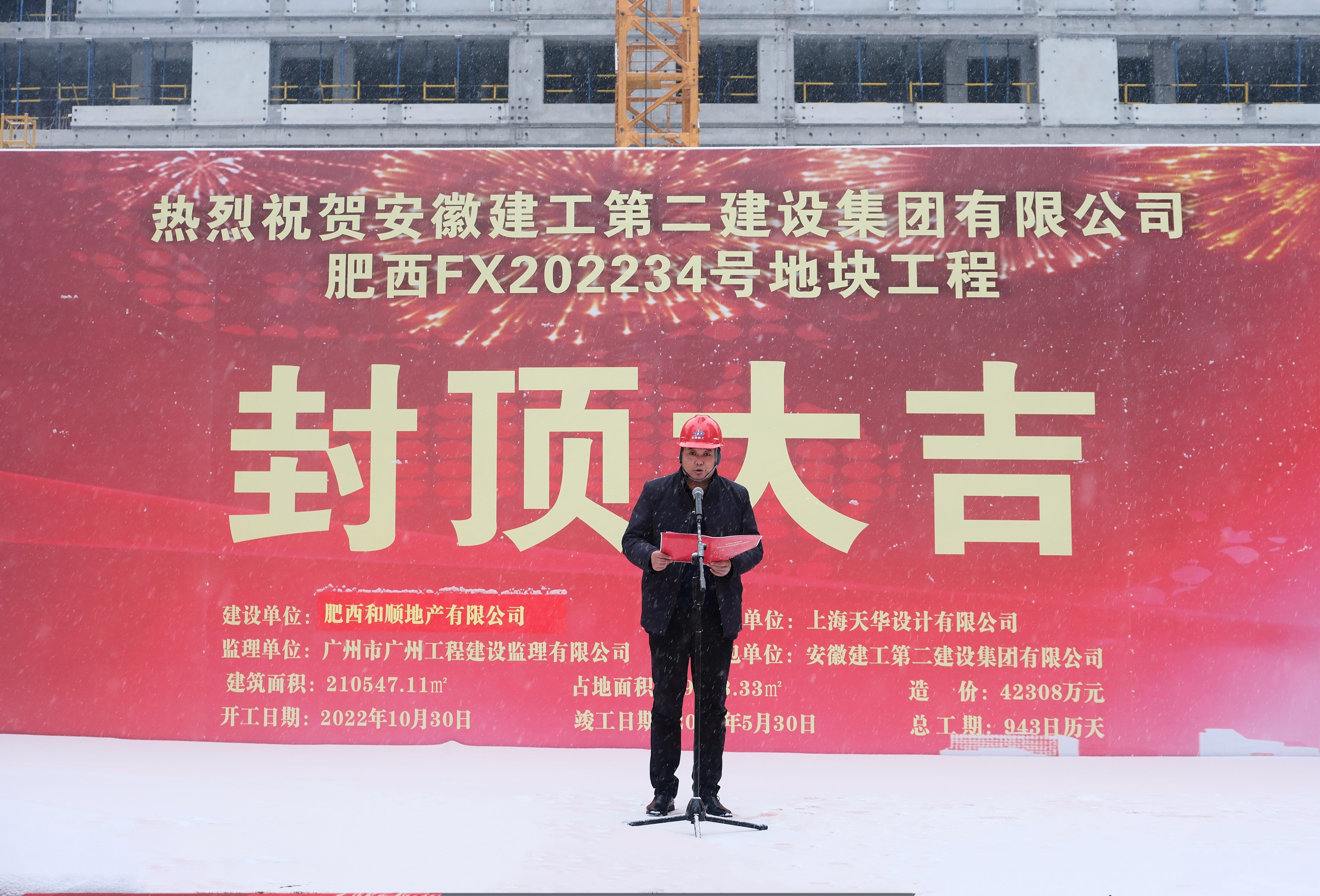 李登祥就項目建設情況做了簡要介紹,他表示:和悅云錦項目是安徽建工集團首次與央企合作的地產(chǎn)項目,是肥西縣滿分競品的高端住宅項目。建設過程中,我們克服了種種困境,在各方的關心支持下,與各參建單位通力協(xié)作,奮力拼搏,有力地保證了整個工程建設的穩(wěn)步推進,確保了洋房主體工程如期順利封頂。我們將以洋房主體封頂為標志,再接再厲,繼續(xù)與保利、越秀、和順地產(chǎn)精誠合作,以飽滿的熱情、周密的組織、優(yōu)質(zhì)的服務確保工程進度和工程質(zhì)量,如期為業(yè)主奉獻美好家園,打造“優(yōu)質(zhì)工程、平安工程、綠色工程、廉潔工程”,打造央地國企合作示范新標桿。