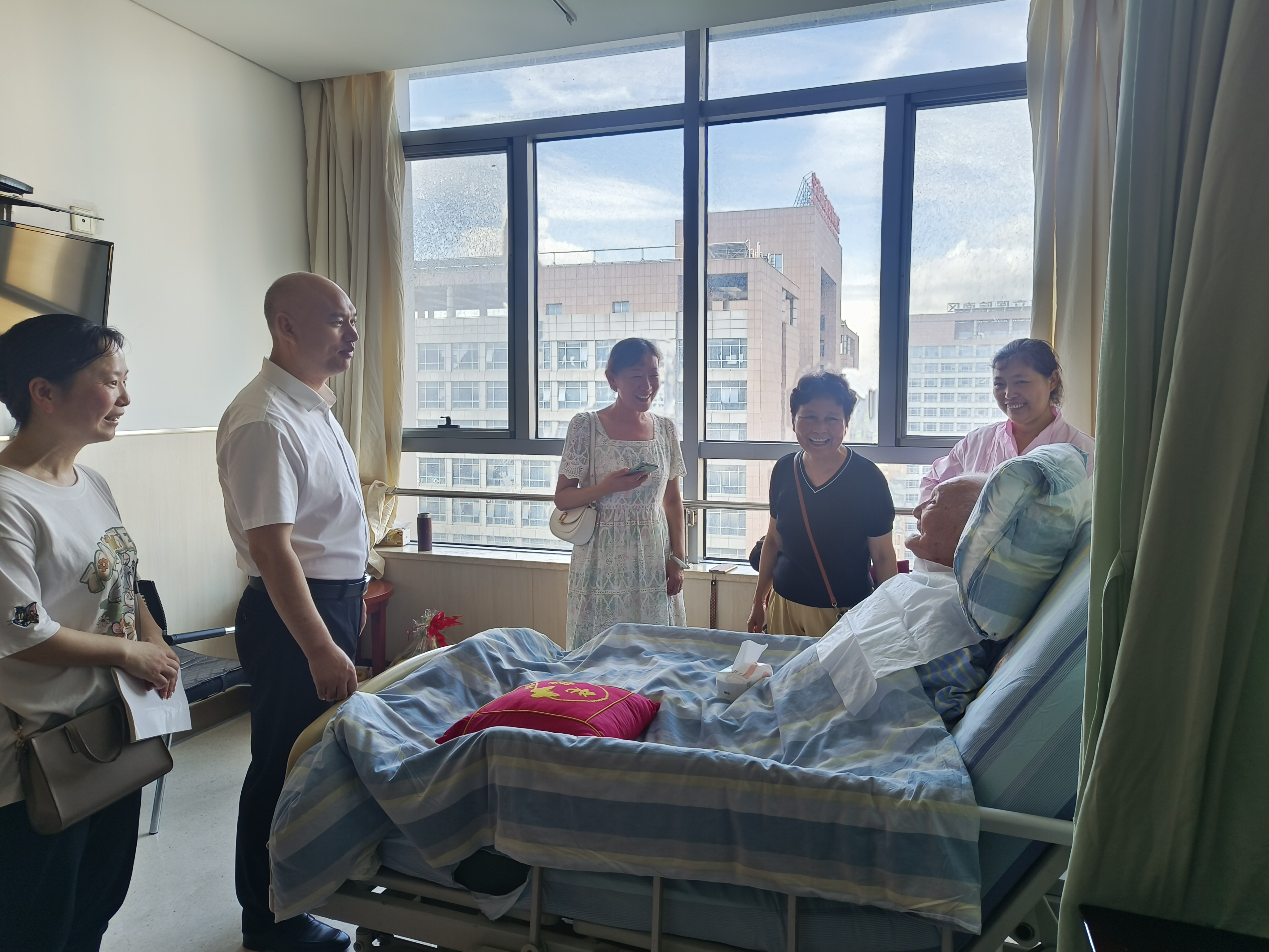 在慶祝建黨103周年之際,6月30日上午,建工股份副總經(jīng)理、建工二建黨委書記、董事長(zhǎng)朱忠明一行前往醫(yī)院看望慰問(wèn)離休老干部李輝同志,向這位曾經(jīng)為國(guó)家、社會(huì)和公司發(fā)展做出貢獻(xiàn)的前輩送上誠(chéng)摯的關(guān)懷和問(wèn)候。