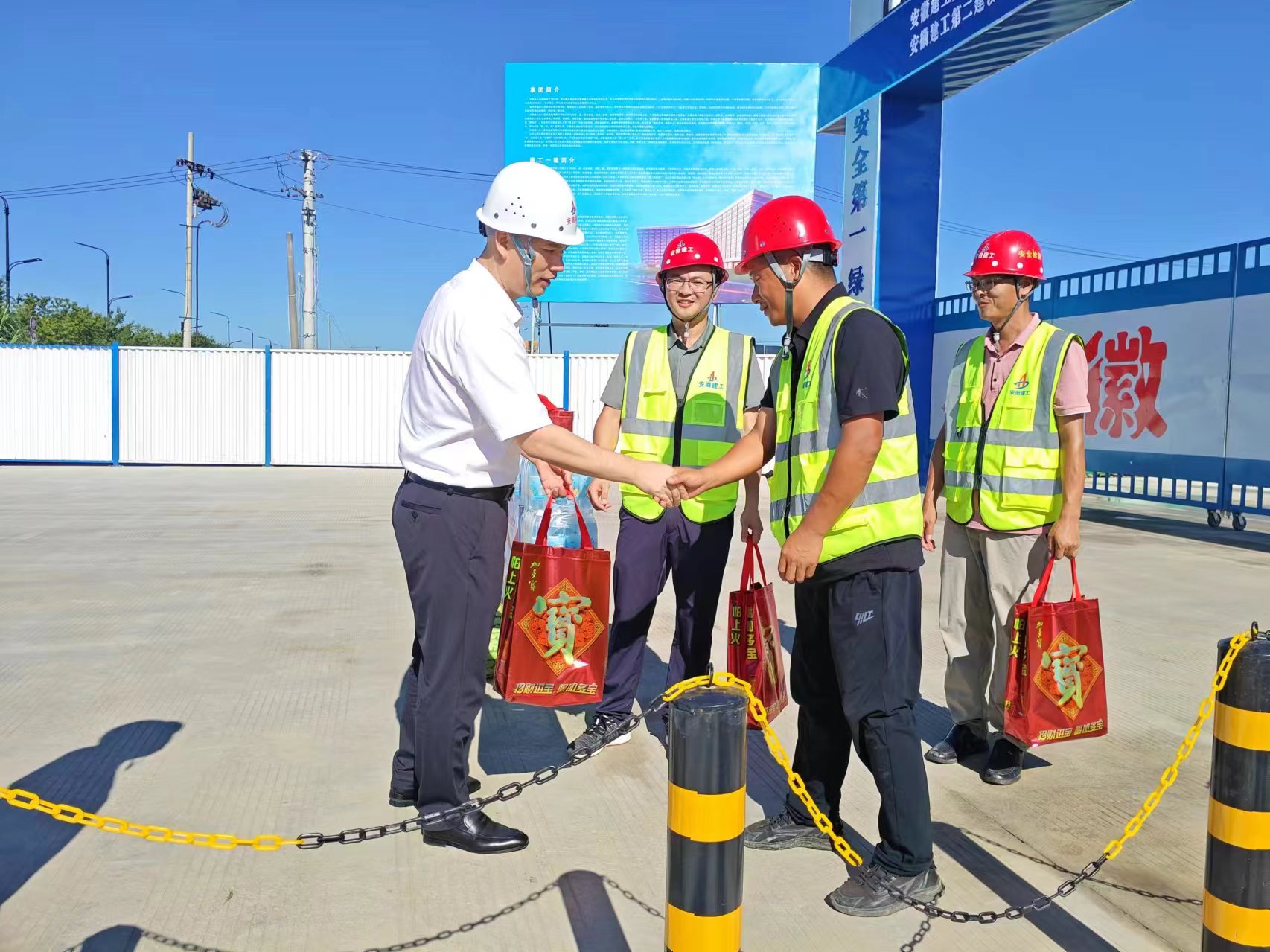 在項(xiàng)目現(xiàn)場(chǎng),朱忠明詳細(xì)了解項(xiàng)目整體建設(shè)進(jìn)度,認(rèn)真檢查項(xiàng)目安全生產(chǎn)措施落實(shí)及人員工作生活保障情況,親切看望慰問一線建設(shè)者并送上防暑降溫用品,叮囑大家做好防暑降溫,注意勞逸結(jié)合,加強(qiáng)防護(hù),確保自身安全和健康。