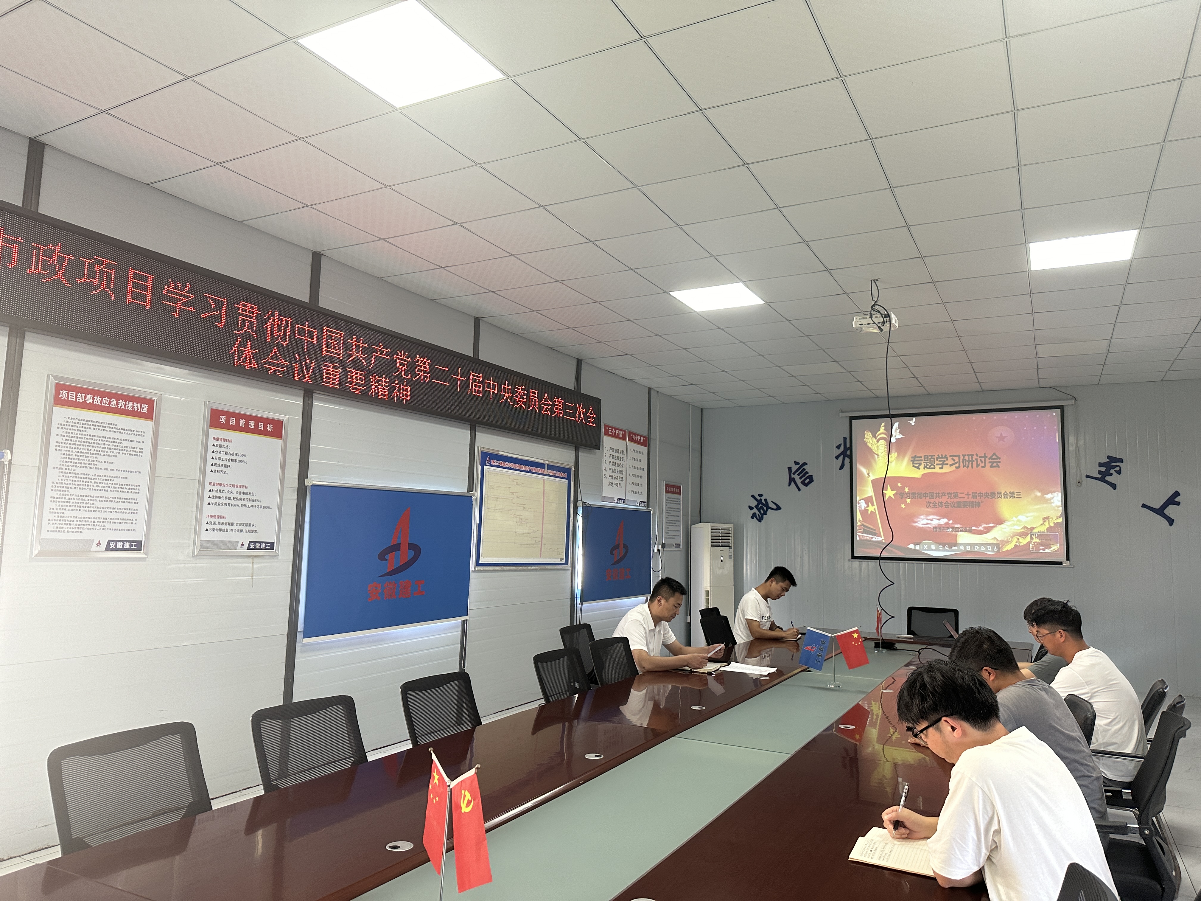 學(xué)習(xí)宣傳貫徹黨的二十屆三中全會(huì)精神,是當(dāng)前和今后一個(gè)時(shí)期的重大政治任務(wù)。宿徐現(xiàn)代產(chǎn)業(yè)園市政項(xiàng)目黨支部認(rèn)真學(xué)習(xí)、廣泛討論、深入交流,學(xué)習(xí)《中國(guó)共產(chǎn)黨第二十屆中央委員會(huì)第三次全體會(huì)議公報(bào)》,觀看文件解讀資料,并通過(guò)主題黨日、主題團(tuán)日、座談會(huì)等共同研讀《黨的二十屆三中全會(huì)<決定>學(xué)習(xí)輔導(dǎo)百問(wèn)》,并結(jié)合自身工作情況分享學(xué)習(xí)心得和體會(huì),持續(xù)掀起學(xué)習(xí)貫徹黨的二十屆三中全會(huì)精神熱潮,推動(dòng)黨的二十屆三中全會(huì)精神入腦入心、落地生根。