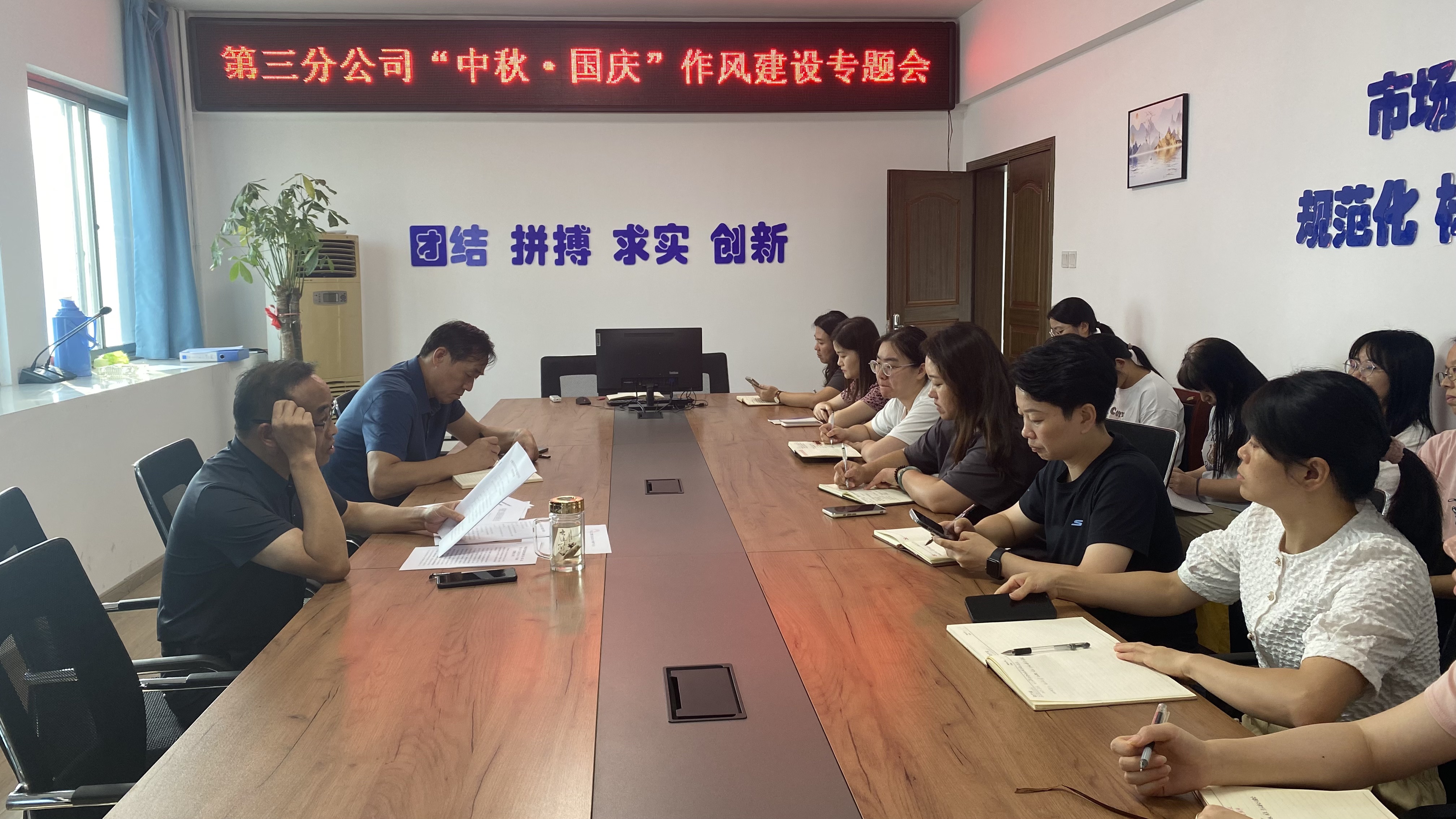為進(jìn)一步加強(qiáng)“中秋、國慶”期間紀(jì)律作風(fēng)建設(shè),增強(qiáng)分公司全員廉潔自律意識(shí),營造風(fēng)清氣正的節(jié)日氛圍,9月12日下午,第三分公司召開“中秋、國慶”節(jié)前作風(fēng)建設(shè)專題會(huì),會(huì)議由黨支部書記司圣華主持。