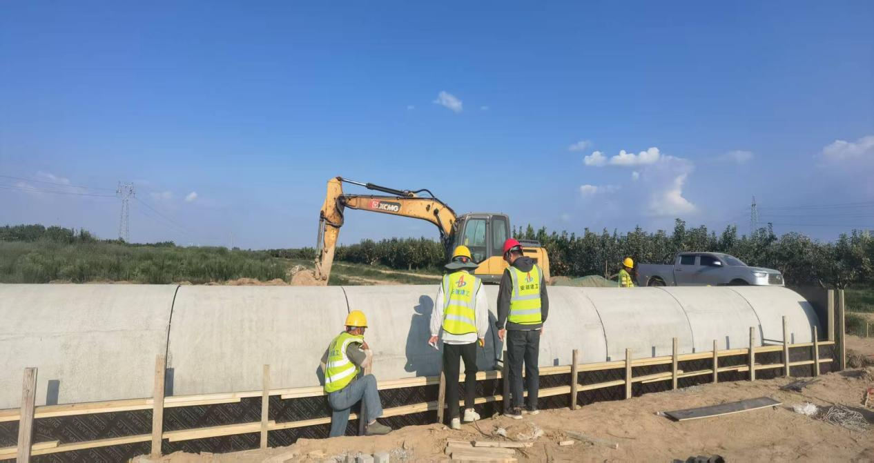 2025年7月,徐商路基02標(biāo)段正式啟動圓管涵施工。本標(biāo)段路線全長16.49km,共設(shè)橋梁19座,橋梁總長3959m。作為全線首個(gè)開展圓管涵施工的標(biāo)段,在建設(shè)單位、監(jiān)理單位及施工單位全體人員的共同努力下,提前完成圓管涵施工方案的編制,并于近日順利完成K36+856.5處圓管涵施工任務(wù)。