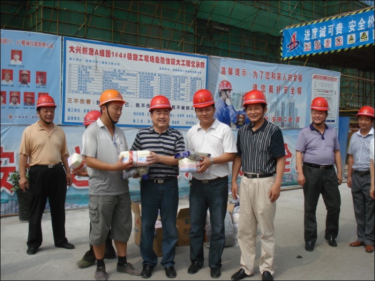 炎炎夏日送清涼,絲絲關(guān)愛寄深情。集團(tuán)領(lǐng)導(dǎo)心系員工安全與健康,令員工們興奮不已,極大地激發(fā)了員工的愛崗熱情和工作積極性,進(jìn)一步增強(qiáng)了員工的凝聚力和向心力。大家表示,集團(tuán)領(lǐng)導(dǎo)在百忙中能下基層關(guān)心我們員工,我們非常感動!我們將以實(shí)際行動戰(zhàn)高溫、斗酷暑,積極干好本職工作,努力完成各項生產(chǎn)經(jīng)營任務(wù),為安徽二建和集團(tuán)公司跨越發(fā)展作出自己應(yīng)有的貢獻(xiàn)!