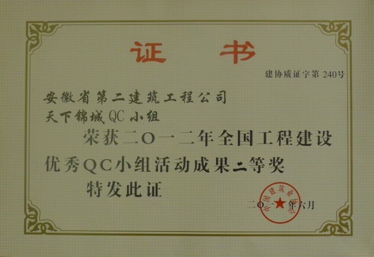 近日,從2012年度全國(guó)工程建設(shè)優(yōu)秀質(zhì)量管理(QC)小組評(píng)審表彰會(huì)上傳來(lái)好消息,二公司質(zhì)量技術(shù)處QC小組《提高外墻柔性面磚施工合格率》課題從眾多項(xiàng)目成果中脫穎而出,經(jīng)國(guó)家工程建設(shè)質(zhì)量獎(jiǎng)審定委員會(huì)審定,榮獲中國(guó)建筑業(yè)協(xié)會(huì)工程建設(shè)質(zhì)量管理分會(huì)“2012年度全國(guó)工程建設(shè)優(yōu)秀QC小組活動(dòng)成果”二等獎(jiǎng),并獲頒優(yōu)秀成果證書(shū)及獎(jiǎng)牌。該課題還榮獲安徽省建設(shè)工程優(yōu)秀QC小組一等獎(jiǎng)。