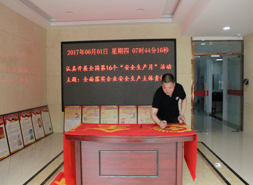 6月1日上午,安全管理部精心準(zhǔn)備,利用安全宣傳展板,懸掛橫幅、電子屏幕播放“安全生產(chǎn)月”主題活動(dòng)等形式進(jìn)行宣傳,并與工會(huì)共同開展“安全生產(chǎn)月”宣誓簽名活動(dòng)。公司領(lǐng)導(dǎo)班子成員及各部門職工100余人參加宣誓并鄭重簽名。