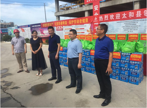 連日來高溫酷暑,為有效緩解高溫給一線施工人員帶來的不便,更好地維護(hù)施工現(xiàn)場員工身心健康和人身安全,確保工程進(jìn)度有力推進(jìn),7月19日上午,太和縣縣長劉牧愚、重點局局長苗玉勇一行頂著烈日來到安徽二建太和發(fā)藝時尚文化中心施工現(xiàn)場開展“送清涼”活動,給奮戰(zhàn)在一線的廣大員工送去了絲絲涼意和誠摯的關(guān)懷。