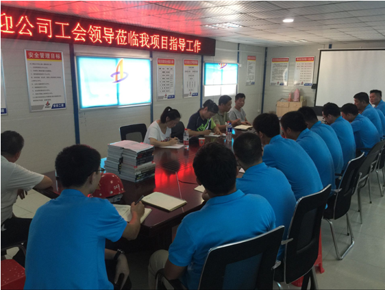 李主席一行到達施工現(xiàn)場,參觀了工地,仔細詢問了項目概況以及目前施工進度、質(zhì)量、安全等方面情況,聽取了項目工會主席創(chuàng)建“工人先鋒號”匯報,對項目班子以“一流工作、一流服務(wù)、一流業(yè)績、一流團隊”為目標(biāo)的創(chuàng)建活動給予了肯定,鼓勵項目部繼續(xù)完善,爭創(chuàng)集團“工人先鋒號”工程。