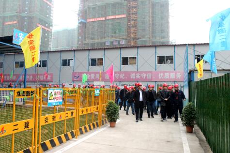 12月1日,安徽二建阜陽(yáng)大學(xué)城•紅街項(xiàng)目、安建楓林源筑項(xiàng)目施工現(xiàn)場(chǎng)舉行了在建項(xiàng)目現(xiàn)場(chǎng)觀摩會(huì)?;顒?dòng)旨在深入推進(jìn)公司基礎(chǔ)管理深化年活動(dòng),充分發(fā)揮基層黨組織推動(dòng)發(fā)展、服務(wù)職工、凝聚人心、促進(jìn)和諧作用,使黨建工作更好地融入企業(yè)的生產(chǎn)經(jīng)營(yíng)管理之中,進(jìn)一步提高施工現(xiàn)場(chǎng)文明生產(chǎn)施工和安全質(zhì)量管理水平。公司黨委書記劉賢奇、副總經(jīng)理葉和永出席,所屬分公司黨支部書記、分管安全生產(chǎn)副經(jīng)理及安全科、綜合辦負(fù)責(zé)人、全體自營(yíng)項(xiàng)目項(xiàng)目經(jīng)理、安全負(fù)責(zé)人、項(xiàng)目黨支部負(fù)責(zé)人參加觀摩會(huì)。
