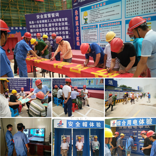活動當(dāng)天,共發(fā)放安全宣傳資料100余份,接受項目職工咨詢50余人次;開展預(yù)防高墜、中暑及火災(zāi)救援演練;給工友們體檢,告知夏季高溫季節(jié)施工注意事項;帶工友們觀看圖片展覽,講解安全生產(chǎn)知識,到安全教育體驗館進(jìn)行實(shí)體和VR虛擬體驗;現(xiàn)場全體人員參與宣誓及簽名活動。現(xiàn)場活動結(jié)束后,安全管理部在會議室開展安全主題宣講活動,帶領(lǐng)項目職工學(xué)習(xí)《安全生產(chǎn)條例》及《建筑安全生產(chǎn)標(biāo)準(zhǔn)化示范工地評價標(biāo)準(zhǔn)》(DB34/T5040-2016),組織項目管理人員開展安全生產(chǎn)經(jīng)驗交流會,總結(jié)工作亮點(diǎn),查找不足,促進(jìn)今后工作的順利開展。