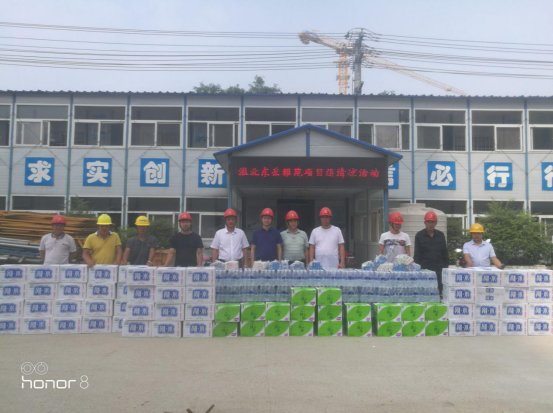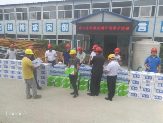 為做好公司夏季安全生產(chǎn)和防暑降溫工作,關(guān)心關(guān)愛(ài)一線職工, 6 月22 日,公司副總經(jīng)理葉和永,總經(jīng)理助理蒯家江、安全總監(jiān)曹建在分公司支部書記陳習(xí)武的陪同下來(lái)到淮北東岳雅苑項(xiàng)目部,為一線工人送去飲料、藥品等防暑降溫物資,并囑咐基層管理人員采取有效防暑降溫和安全生產(chǎn)保障措施, 避免高溫時(shí)段疲勞作 業(yè), 防止中暑和其他各類生產(chǎn)安全事故的發(fā)生。