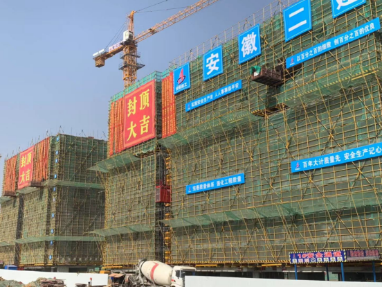 該項目是五分公司在合肥市的第一個項目,自開工以來,項目部嚴(yán)格按照公司和業(yè)主的要求,合理調(diào)配人員設(shè)備,精細(xì)化管理,標(biāo)準(zhǔn)化施工,抓管控保優(yōu)質(zhì),全體成員團結(jié)一致,克服種種困難,確保1、2號樓達到節(jié)點要求,順利封頂。