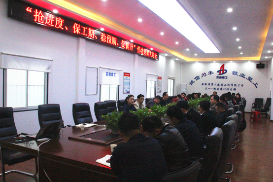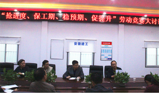 11月13日上午,安徽二建公司“搶進(jìn)度、保工期、穩(wěn)預(yù)期、促提升”勞動(dòng)競賽大討論在文一·塘溪津門項(xiàng)目部召開。公司總經(jīng)理陸勤斌、黨委工作部、工程管理部、工會(huì)負(fù)責(zé)人出席會(huì)議,所屬分公司相關(guān)人員及項(xiàng)目部管理人員參加會(huì)議。