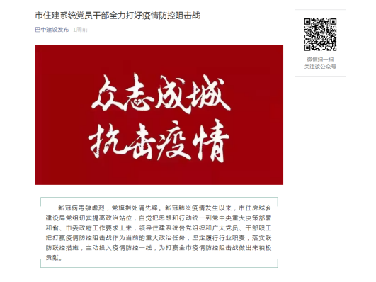 近日,安徽二建四川巴中半山逸城項(xiàng)目一次性通過(guò)巴中市安全監(jiān)督站復(fù)工復(fù)產(chǎn)驗(yàn)收,正式復(fù)工。并通過(guò)巴中市住房城鄉(xiāng)建設(shè)局機(jī)關(guān)黨委書記楊白玉上報(bào),在巴中建設(shè)發(fā)布(公眾號(hào))《市住建系統(tǒng)黨員干部全力打好疫情防控狙擊站》一文中發(fā)表,進(jìn)行宣傳。