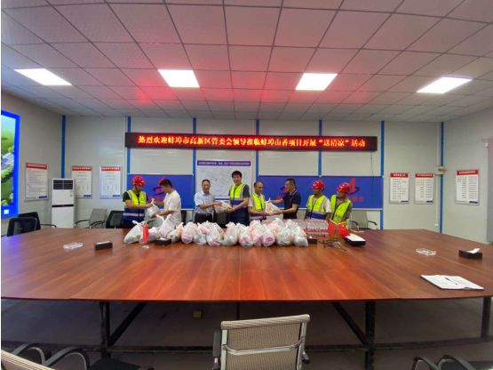 8月11日下午,蚌埠市高新區(qū)管委會韓永林,高新投資集團(tuán)、高新建發(fā)公司總經(jīng)理陳輝蒞臨安徽二建蚌埠山香安置房EPC項目開展“送清涼”活動,為項目送來了藿香正氣水、綠豆、菊花茶、花露水等防暑降溫物品。韓永林詢問了生產(chǎn)進(jìn)度、質(zhì)量安全施工以及高溫天氣項目部采取的防暑降溫措施等方面情況,同時要求,一定要確保高溫天氣下現(xiàn)場作業(yè)人員的安全,切實(shí)提高對一線作業(yè)職工的關(guān)心、關(guān)懷,避免 “非戰(zhàn)斗減員”情況發(fā)生,把安全放在首位,做到安全文明施工。