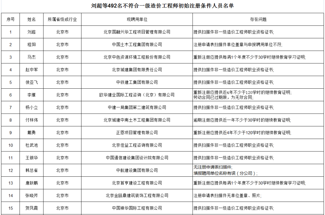 點(diǎn)擊圖片查看不符合一級(jí)造價(jià)工程師初始注冊(cè)條件人員及存在問(wèn)題完整名單
