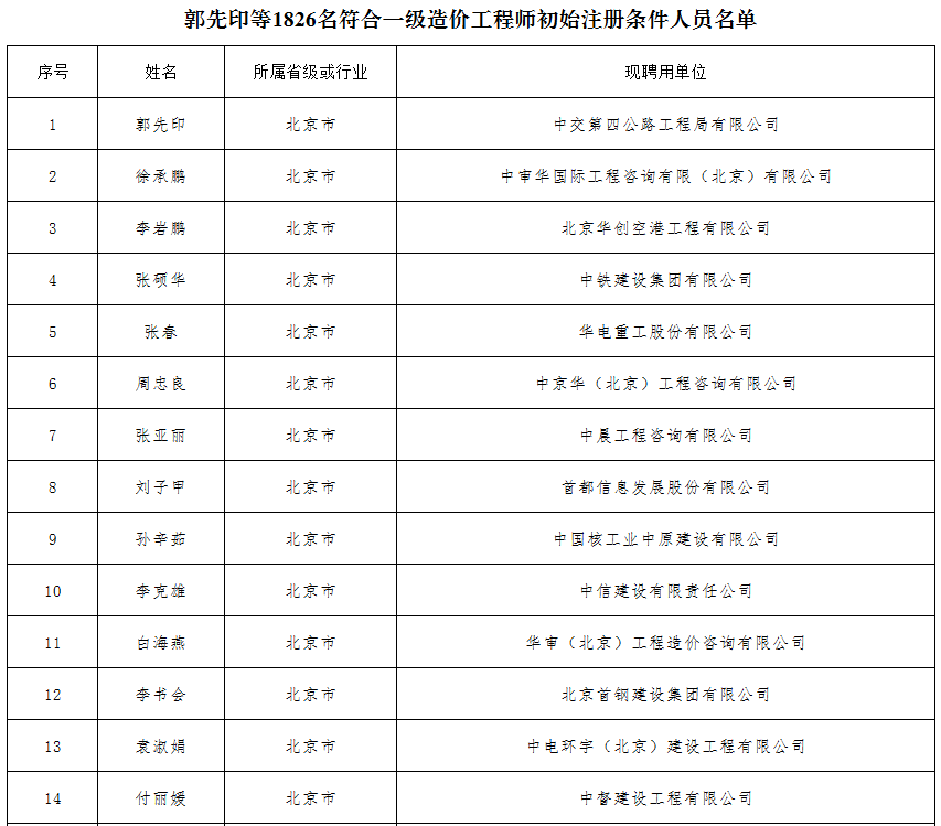 根據(jù)《注冊(cè)造價(jià)工程師管理辦法》的規(guī)定,經(jīng)審核,1826人符合一級(jí)造價(jià)工程師初始注冊(cè)條件、492人不符合一級(jí)造價(jià)工程師初始注冊(cè)條件,現(xiàn)將名單予以公示,公示期為2020年10月9日至2020年10月21日。