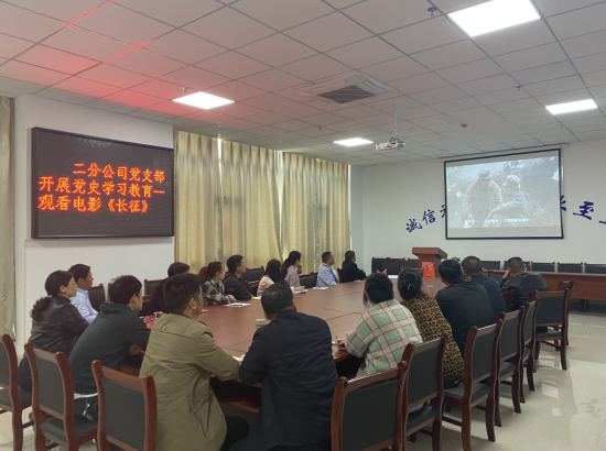 為認(rèn)真貫徹落實習(xí)近平總書記在中央黨史學(xué)習(xí)教育動員大會上的重要講話精神,進(jìn)一步深入貫徹公司黨委關(guān)于開展黨史學(xué)習(xí)教育的文件精神。4月16日,二分公司黨支部開展黨史學(xué)習(xí)教育活動,組織黨員和干部職工觀看電影《長征》及紀(jì)錄片《信仰的力量》節(jié)選《祖國至上》。