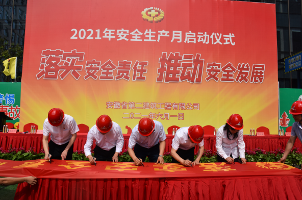 6月1日上午,安徽二建公司在六分公司文一春風(fēng)里項(xiàng)目舉行“安全生產(chǎn)月”啟動(dòng)儀式,公司安委會(huì)成員,安全管理部、工會(huì)全體人員,所屬各單位分管安全、質(zhì)量副經(jīng)理、安全科長(zhǎng),在肥項(xiàng)目經(jīng)理共百余人參加。