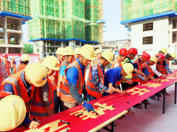 上午8點(diǎn)30分活動(dòng)開(kāi)始,活動(dòng)由副總經(jīng)理葉和永主持。全體職工在安全總監(jiān)曹建的帶領(lǐng)下進(jìn)行了安全宣誓。隨后,安全管理部副主任賈賢財(cái)組織大家進(jìn)行安全承諾簽名、安全咨詢(xún)及消防應(yīng)急救援演練活動(dòng)。公司所屬各單位、項(xiàng)目部也同步開(kāi)展了啟動(dòng)儀式。
