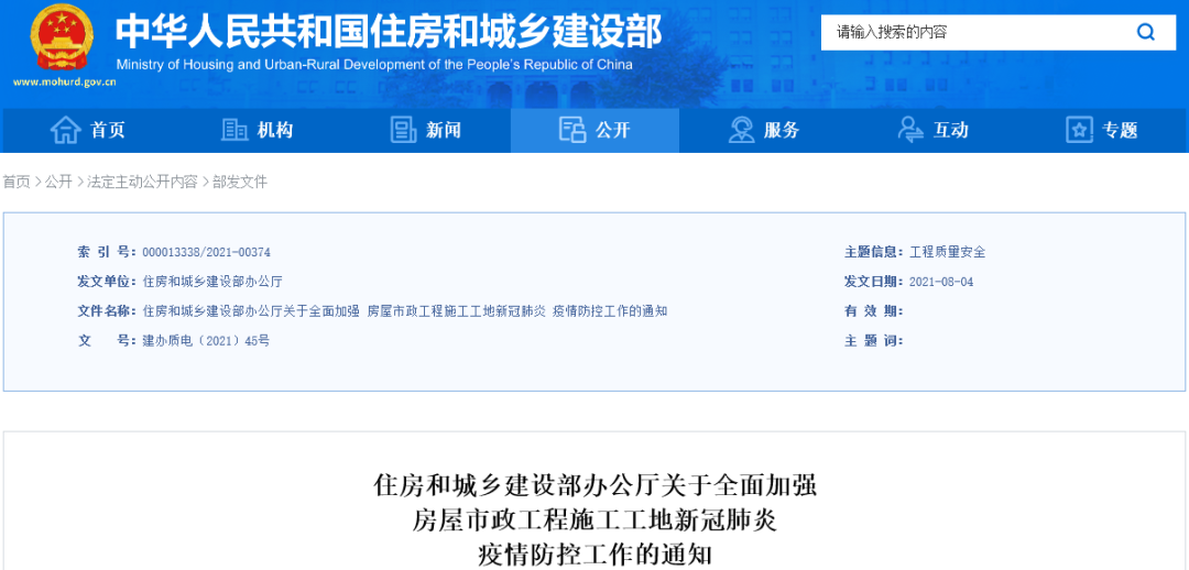 為堅決貫徹落實黨中央、國務(wù)院關(guān)于新冠肺炎疫情防控的部署要求,持續(xù)深入做好房屋市政工程施工工地(以下簡稱“施工工地”)疫情防控工作,切實保障建筑施工領(lǐng)域從業(yè)人員身體健康和生命安全,住房和城鄉(xiāng)建設(shè)部辦公廳日前印發(fā)通知,要求全面加強施工工地疫情防控工作。