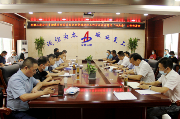 9月3日下午,安徽二建公司召開貫徹落實全國國有企業(yè)黨的建設工作會議精神情況“回頭看”工作部署會,學習傳達了建工控股黨委貫徹落實全國國有企業(yè)黨的建設工作會議精神情況“回頭看”工作部署會暨三季度黨群工作會議精神,并對公司開展“回頭看”工作進行部署安排。公司黨委副書記、總經(jīng)理李建成作動員講話,公司黨委副書記、工會主席王軍主持會議。公司領導班子成員、機關部門主要負責人、所屬各單位黨政主要領導參會。
