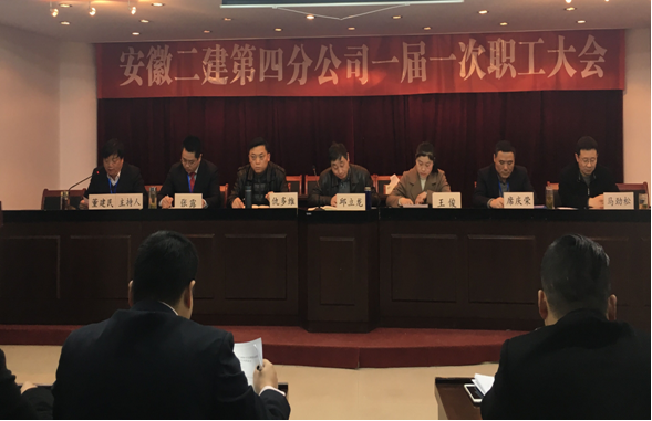 乘風(fēng)破浪推發(fā)展,勠力同行齊奮進(jìn)。為加快轉(zhuǎn)型升級步伐,優(yōu)化內(nèi)部管理機(jī)制,客觀分析當(dāng)前四分公司面臨的形勢,認(rèn)真學(xué)習(xí)貫徹落實(shí)安徽二建公司十五屆四次職代會精神,凝心聚力抓好2017年度各項(xiàng)工作,3月20日上午,安徽二建四分公司一屆一次職工大會在三樓會議室隆重召開。公司總工程師邱立龍、紀(jì)委書記仇多維、女工主任王俊以及四分公司職工近40人參加了會議。