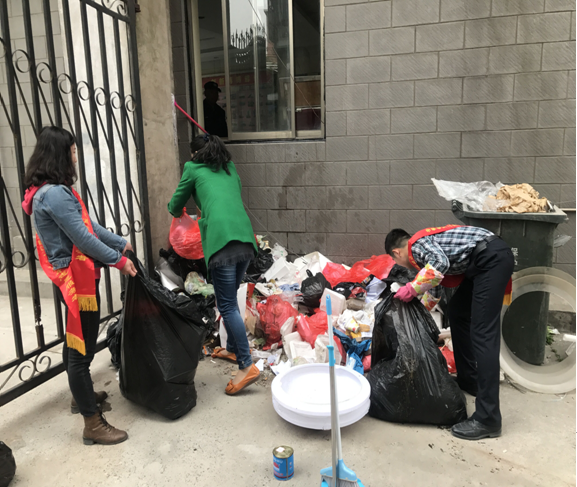 此次活動內(nèi)容主要是清掃公司停車場內(nèi)垃圾、清理“僵尸”自行車、修理損壞設(shè)施、修剪樹木、規(guī)劃車位?;顒又?,青年們頂著刺鼻的氣味、對著污水橫流的垃圾堆,忽略漫天灰塵與滿臉汗水,或是用鍬鏟,或是用手撿,最終將停車場打掃的面目一新。