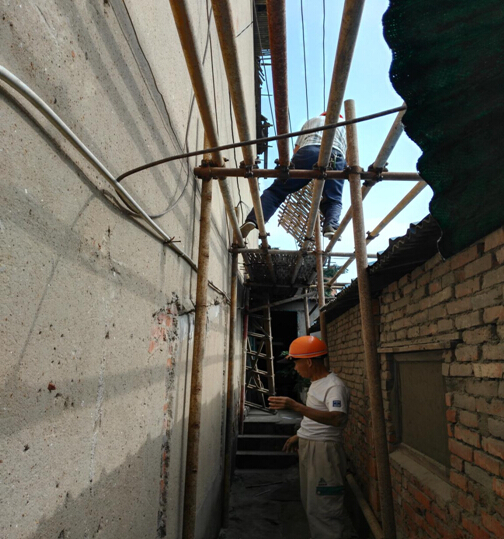 近日,公司后勤綜合服務(wù)部在對公司老舊房屋進(jìn)行日常巡查時發(fā)現(xiàn),原四分公司生活基地大禮堂山墻檐口出現(xiàn)間斷式沉降斷裂。經(jīng)檢查,此處的問題是由墻體自重及屋面木質(zhì)結(jié)構(gòu)自然腐朽所導(dǎo)致的。山墻腳即是住戶出入通道,隨時有墜落傷人的安全隱患。鑒于大禮堂層高十幾米,無法實(shí)施維修處理,我部第一時間向領(lǐng)導(dǎo)匯報后,及時拿出整頓方案,頂著烈日高溫,立即沿山墻搭建一條十幾米長的鋼管架安全通道,排除了隱患,確保居民出入平安。