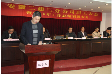 分公司葉和永經(jīng)理在經(jīng)理報(bào)告中圍繞“全面貫徹黨的十八大、十八屆三中、四中、五中全會(huì)精神,深入落實(shí)集團(tuán)首屆職代會(huì)精神及二建公司十五屆三次職代會(huì)精神,以及“基礎(chǔ)管理提升年”為主導(dǎo)思想提出“推進(jìn)從嚴(yán)管理;開創(chuàng)科學(xué)發(fā)展新篇章;實(shí)施精細(xì)管理;全面完成既定新目標(biāo)”的分公司工作主導(dǎo)思想。并在會(huì)上作《推進(jìn)從嚴(yán)管理開創(chuàng)科學(xué)發(fā)展新篇章實(shí)施精細(xì)管理全面完成既定新目標(biāo)》的報(bào)告,報(bào)告肯定了過去一個(gè)時(shí)期的工作成果,并在立足市場(chǎng)、客觀分析的基礎(chǔ)上,明晰契合自身的發(fā)展思路、全面部署下一步各項(xiàng)工作。