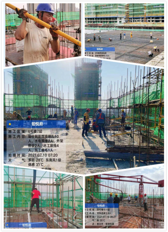 自6月21日公司2021年“學黨史、保安康、搶工期、爭一流”勞動競賽活動啟動后,一分公司淮北鉑悅府項目立即召開動員會,根據(jù)勞動競賽目標,梳理各班組施工任務,下達施工任務書,每天召開安全生產(chǎn)例會,檢查當日任務完成情況,總結經(jīng)驗,及時分析存在的問題,并制定相應糾偏措施,確保完成施工任務。項目全體員工堅定信心、苦干實干、爭分奪秒、大干快干。截止目前,各樓棟形象進度均按勞動競賽計劃完成,7月計劃產(chǎn)值1400萬,實際已完成產(chǎn)值1523萬元,階段性產(chǎn)值目標超額完成。
