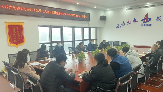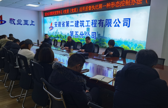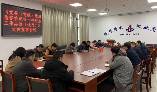 近期,為認(rèn)真落實全面從嚴(yán)治黨主體責(zé)任和監(jiān)督責(zé)任,踐行“四種形態(tài)”,強化“第一種形態(tài)”運用。安徽二建公司所屬各單位組織學(xué)習(xí)了《黨委(黨組)運用監(jiān)督執(zhí)紀(jì)第一種形態(tài)工作辦法(試行)》。