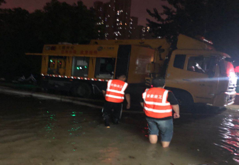 7月18日,合肥遭受77年一遇單日最大降雨。藍(lán)天公寓和大興鎮(zhèn)興泰苑出現(xiàn)內(nèi)澇,情況緊急,人民群眾生命財(cái)產(chǎn)安全遭受威脅,汛情就是戰(zhàn)斗令,二分公司接到指令,馬上組建30余人的抗洪突擊隊(duì),緊急調(diào)運(yùn)大功率水泵2臺(tái),配電箱2個(gè),80米電線電纜,300米水管等防汛物資,20分鐘極速趕到抗洪前線。現(xiàn)場(chǎng)有的架設(shè)水泵、有的鋪設(shè)電纜、有的配合抽水排澇,分工明確、爭(zhēng)分奪秒。經(jīng)過(guò)數(shù)小時(shí)的緊急救援,至凌晨,災(zāi)情得到有效控制。奮戰(zhàn)了8個(gè)小時(shí)的志愿者們才撤出前線。