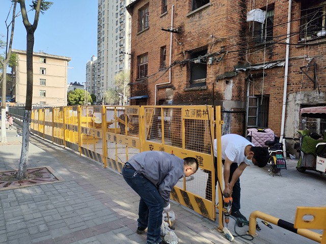 目前疫情防控形勢嚴峻,4月8日接合肥市疫情防控通知,要求各轄區(qū)內(nèi)“三無”小區(qū)實行臨時封閉管理。由于公司居民住宅小區(qū)交通出入口較多,防控難度較大,為了更好地協(xié)助轄區(qū)政府實施封閉式管理,公司積極響應(yīng)號召,落實后勤綜合服務(wù)部牽頭,機械分公司全力支持配合,抽調(diào)施工人員、調(diào)遣防護設(shè)施前往小區(qū)各出入口安裝圍擋,進行臨時封閉,經(jīng)過努力圓滿完成了建設(shè)任務(wù)。
