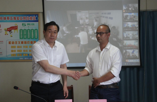 會上,分公司領(lǐng)導(dǎo)與項(xiàng)目經(jīng)理簽訂了《目標(biāo)責(zé)任狀》,為各責(zé)任主體完成全年指標(biāo)下達(dá)了“任務(wù)書”,確立了考核依據(jù)。