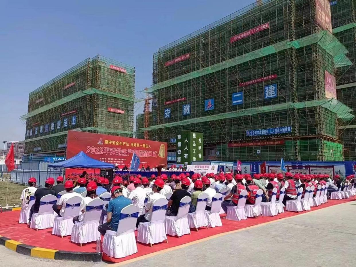 6月18日,安徽二建在固鎮(zhèn)鼎元名邸項目、蚌埠紫金云城項目舉辦2022年安全生產(chǎn)月活動啟動儀式暨現(xiàn)場觀摩交流活動。固鎮(zhèn)縣住房和城鄉(xiāng)建設局局長劉安、應急管理局局長宋洪濤等主管單位代表,蚌埠拓基房地產(chǎn)開發(fā)有限責任公司總經(jīng)理何世華等業(yè)主方代表,安徽二建公司黨委副書記、總經(jīng)理李建成,副總經(jīng)理葉和永,副總經(jīng)理、總工程師費勤波等參加活動,活動由葉和永主持。
