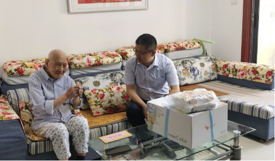 王淑德首先來到離休老黨員李輝同志家中,親切慰問了這位參加過抗日戰(zhàn)爭的老戰(zhàn)士老黨員。李輝老人,1945年參軍,1946年入黨,享受離休老干部待遇。通過與老人交談,了解到老人家庭基本情況,同時(shí)對(duì)老人的健康狀況進(jìn)行了了解。老人今年104歲高齡,身體健康,思維清晰。大家向老人介紹當(dāng)前建工控股的發(fā)展情況,肯定老人在戰(zhàn)爭、和平時(shí)期對(duì)國家所做的貢獻(xiàn),祝愿老人健康長壽、家庭和睦、萬事如意。今天正值老人104歲生日,王淑德一行為他送去生日蛋糕和慰問金,祝福老人生日快樂、健康長壽。