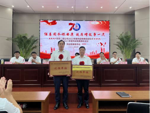 最后,隨著主持人的一聲號令,安徽二建公司“強(qiáng)基固本保安康 提質(zhì)增效爭一流”勞動競賽正式啟動!參加啟動儀式的公司領(lǐng)導(dǎo)向各參賽單位進(jìn)行授旗。