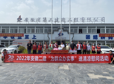 在肥東石塘鎮(zhèn)火龍社區(qū)安置點(diǎn)項(xiàng)目,葉和永為項(xiàng)目職工送上了夏季防暑藥品、飲料、花露水、毛巾等慰問(wèn)品,叮囑他們要做好疫情防控形勢(shì)下的高溫作業(yè)和高溫天氣下的勞動(dòng)保護(hù)。